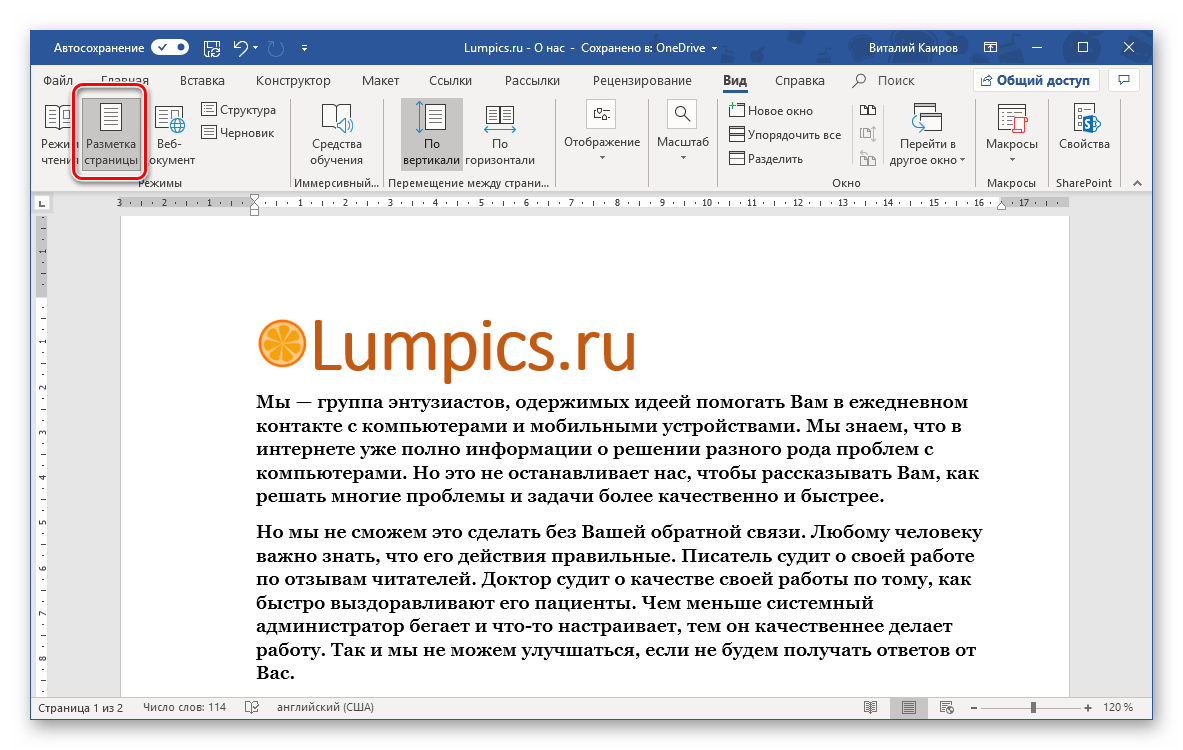 Отображается только горизонтальная линейка (в «Разметке страницы») Если вы работаете с документом в режиме «Разметки страницы», но при этом видите только горизонтальную линейку, необходимо выполнить следующее: