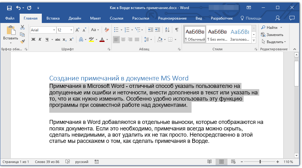 Примечания в ворде позволяют вам предоставлять обратную связь в документе без изменения текста. Вы можете поместить курсор в текст или выбрать объект (изображение, таблицу и т. д.) и вставить примечание в ворде об этой части документа.