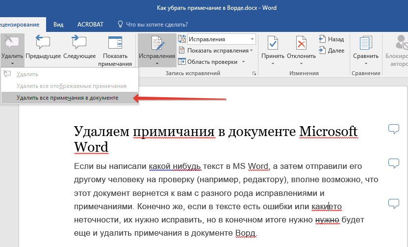, сами примечания из документа никуда не исчезнут. Удалить их можно следующим образом: