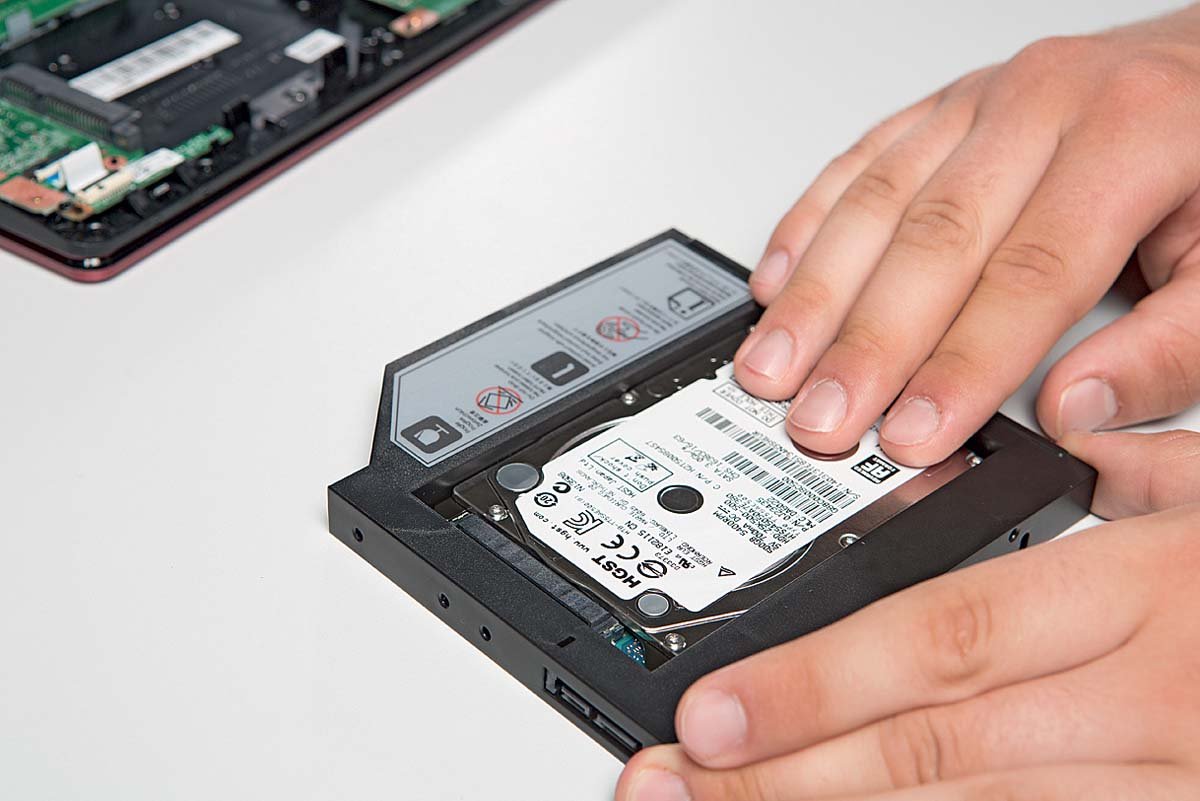 Но не во всех случаях необходима именно замена старого винчестера. В некоторых моделях ноутбуков изначально есть слот для установки ещё одного жёсткого диска, который просто пустует. Следовательно, можно установить новый диск и при этом оставить старый. Процедура установки нового устройства ничем не отличается от замены старого, нужно разобрать ноутбук, найти пустующий слот и установить туда HHD. Потом аккуратно собрать и запустить устройство.