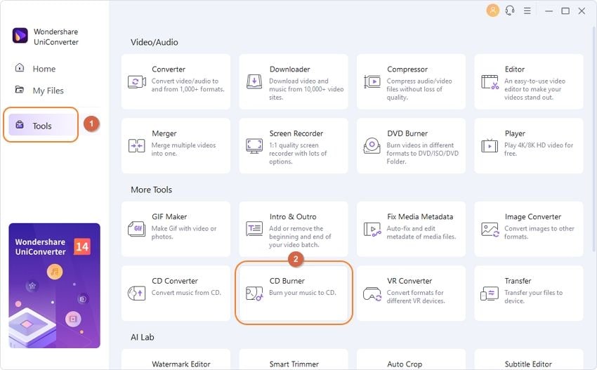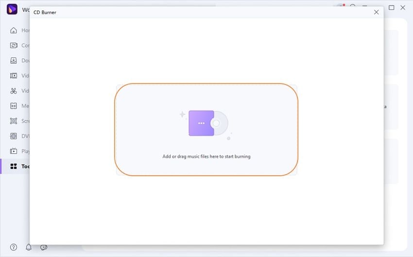 Шаг 3: Вставьте чистый компакт-диск в CD-привод вашего устройства и нажмите на Создать CD или DVD, где вам нужно будет нажать на значок +, чтобы загрузить файлы на инструмент.