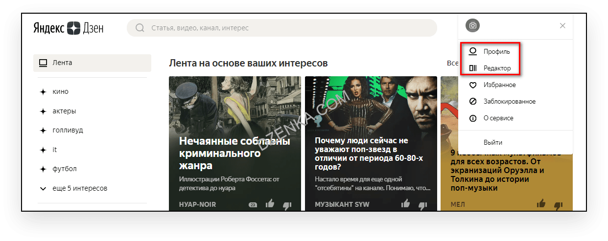 В меню можно открыть свой профиль (там меняется имя пользователя, аватар и другие данные) и редактор (в нем и будут создаваться материалы для канала).