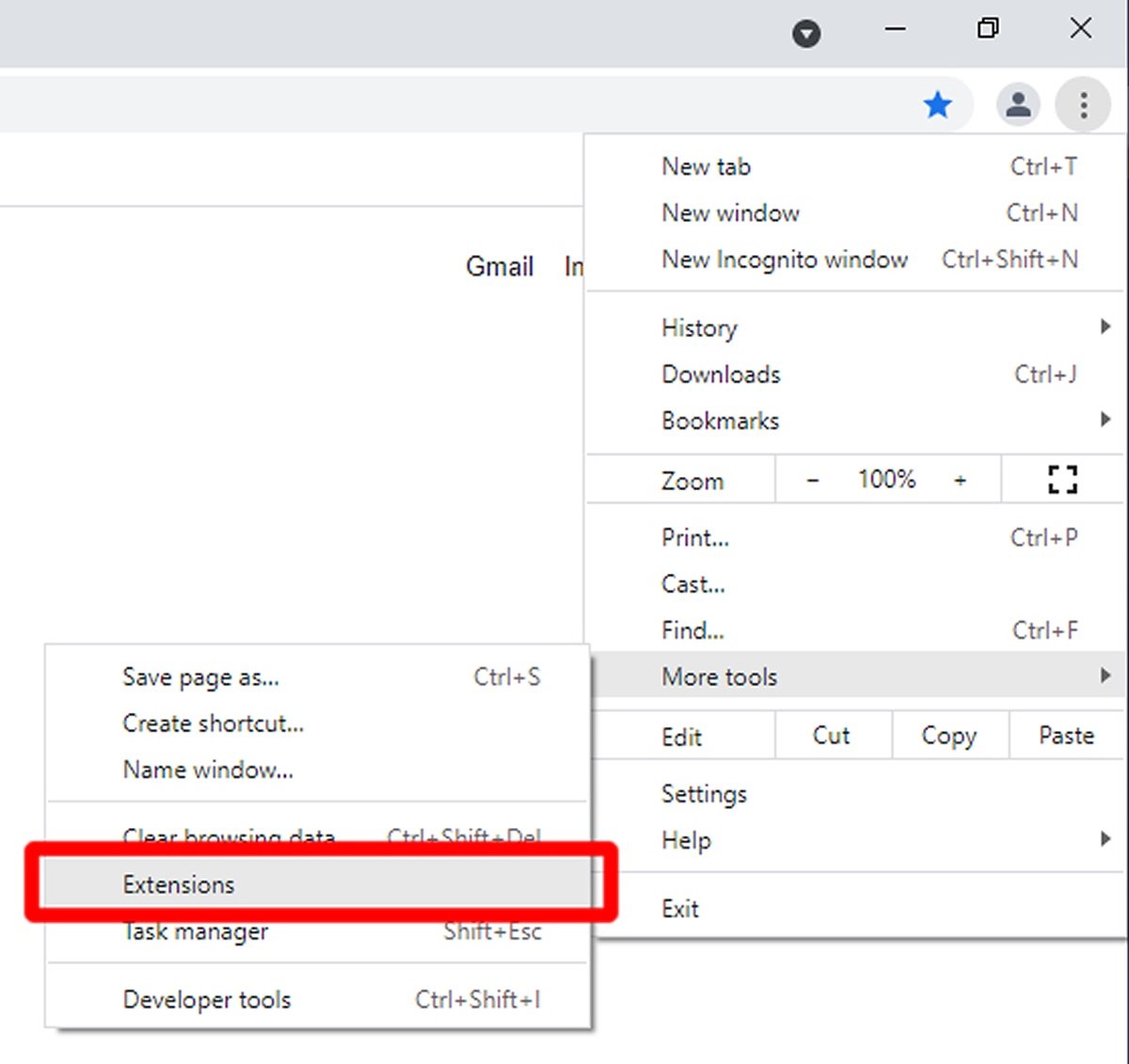 При наведении курсора на «Дополнительные инструменты» слева отобразится больше меню, нажмите «Расширения».