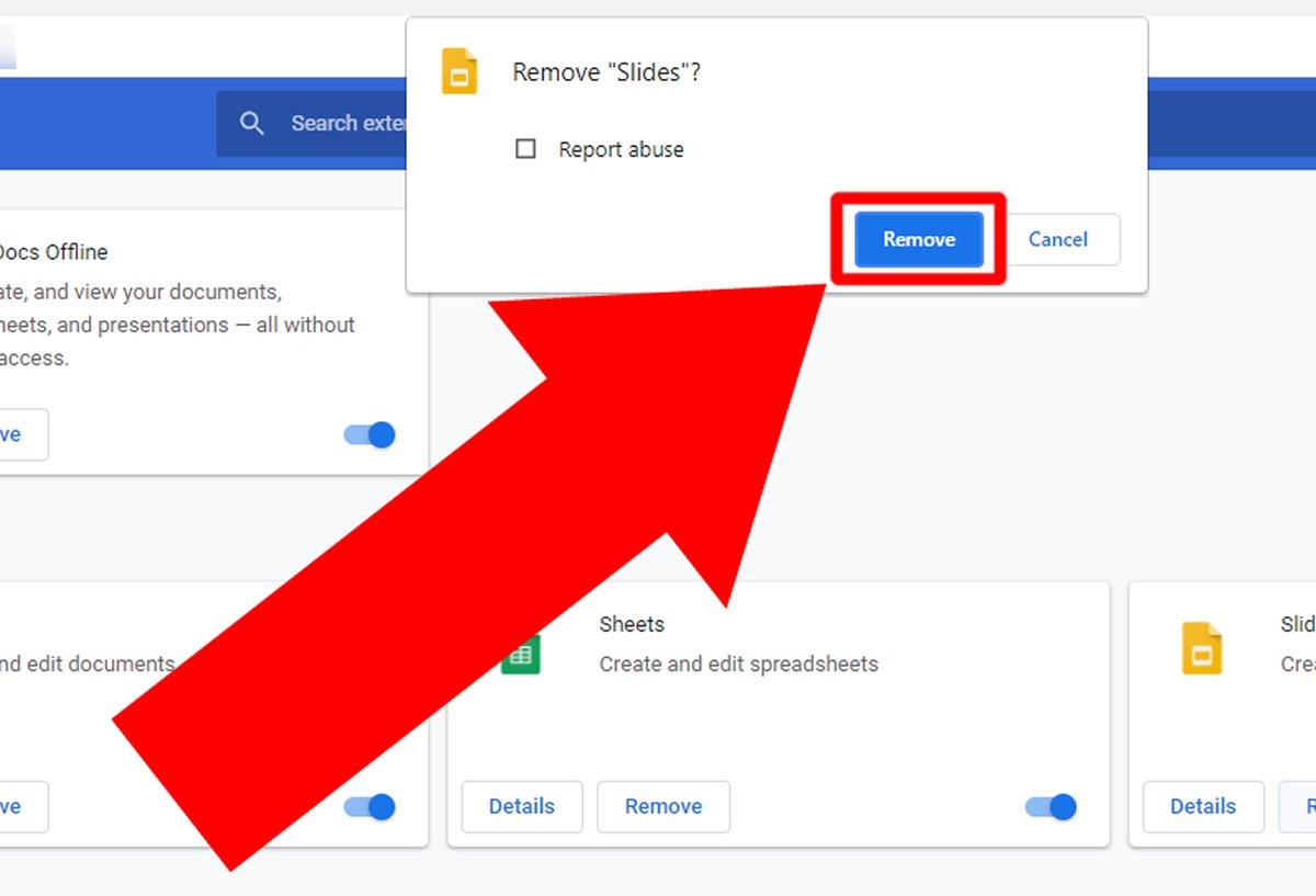 Нажмите Удалить, чтобы удалить расширение