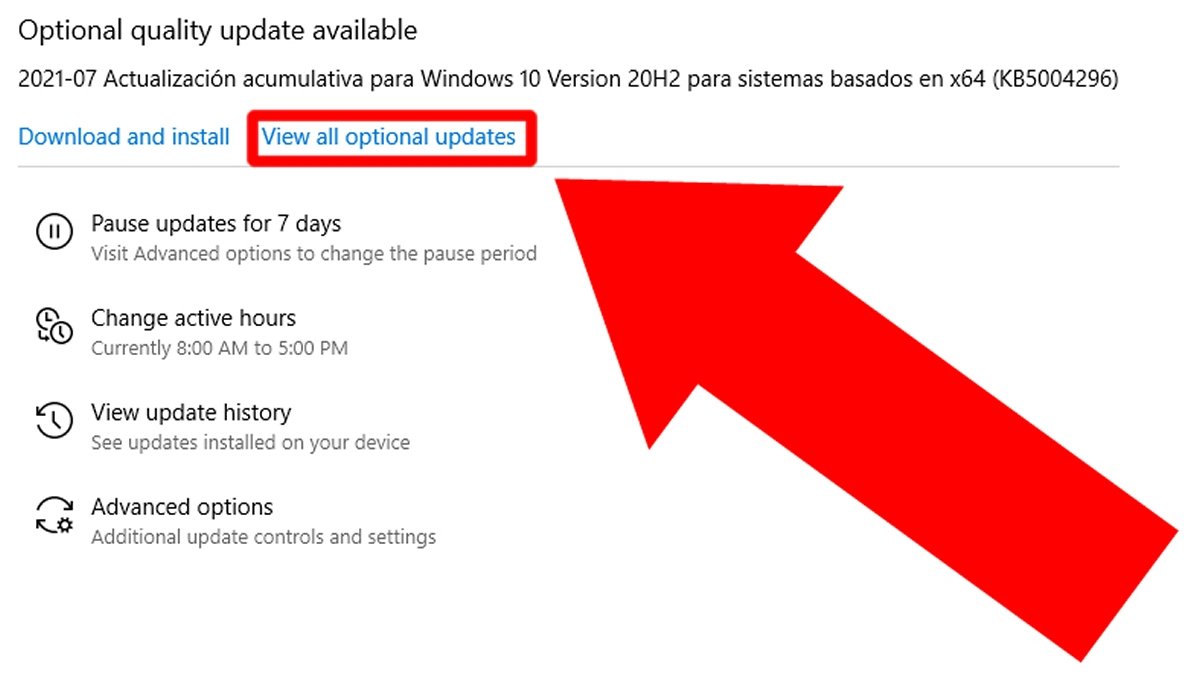 Нажмите Просмотреть все необязательные обновления, чтобы увидеть все доступные обновления