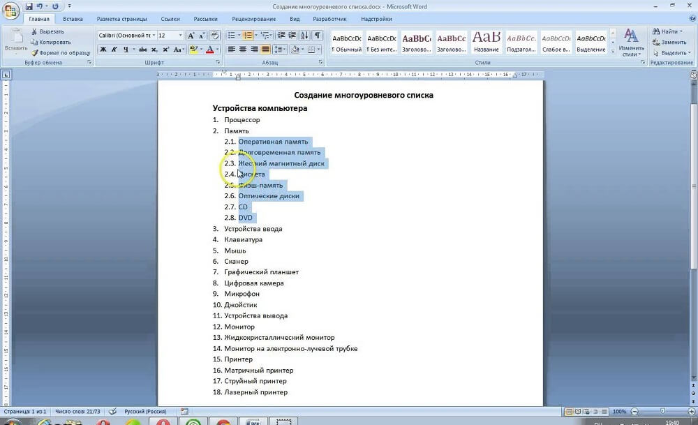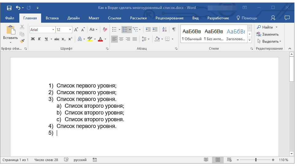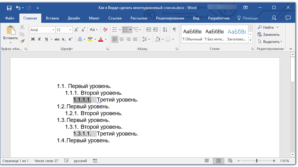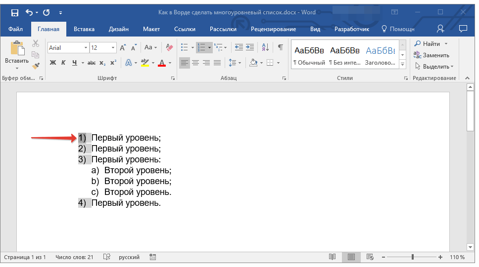 Как сделать многоуровневый список в ворде?