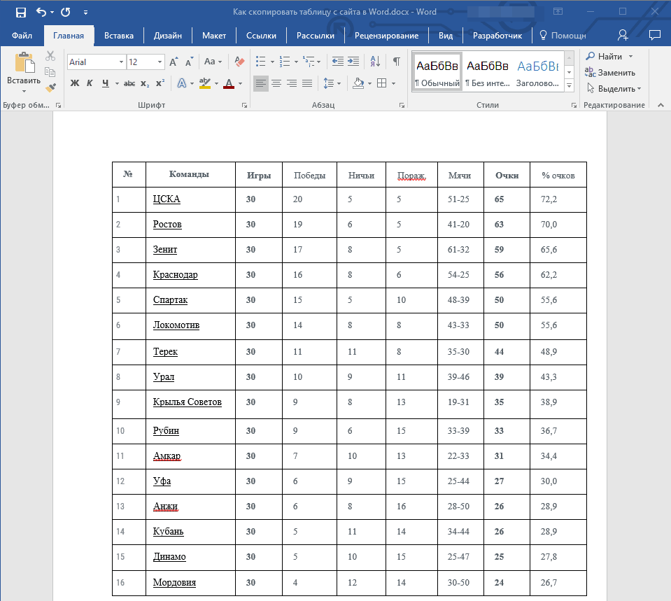 Как сделать таблицу в Word – Пример добавления стиля таблице