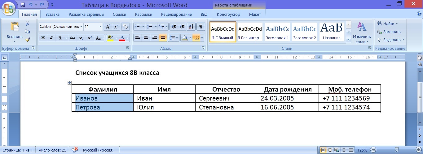 Как сделать таблицу в Word – Работа с таблицами, вкладка Конструктор