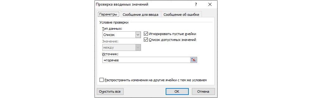 Нюанс – при таком методе в ячейку можно ввести значения, ТОЛЬКО