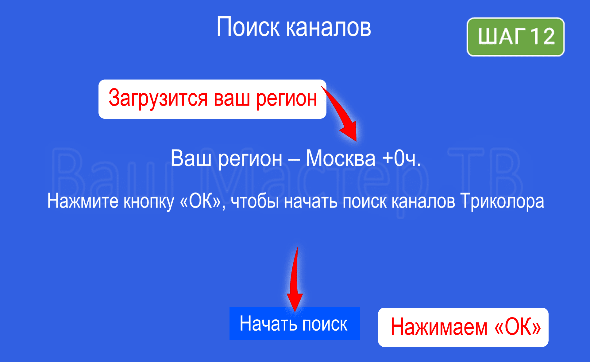 Шаг 12 ➠ Если с сигналом всё в порядке, ваш регион будет найден и появится заставка как на картинке ниже
