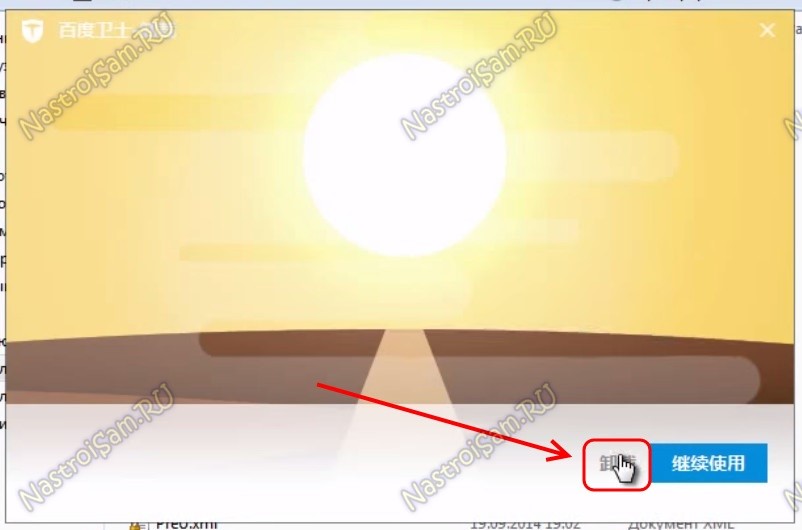 Соглашаемся с удалением. Теперь переходим в каталог Program Files (x86)\Common Files\Baidu\BaiduProtect и запускаем файл Uninst.exe. Он тоже на китайском, поэтому нажимаем вот эту кнопку: