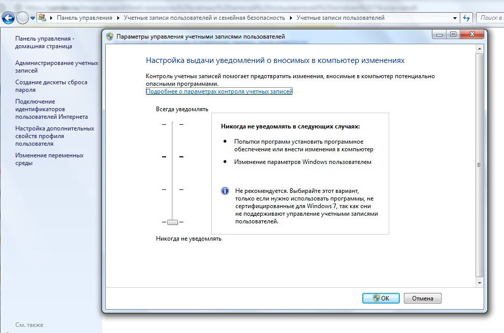 Мы уверяем, что вы обнаружите такие учётные записи, для которых права администратора недоступны, поэтому предпринимать какие-либо действия относительно их совершенно не нужно. Именно по этой причине опытные пользователи рекомендуют отключить UAC только для учётных записей с административными правами .