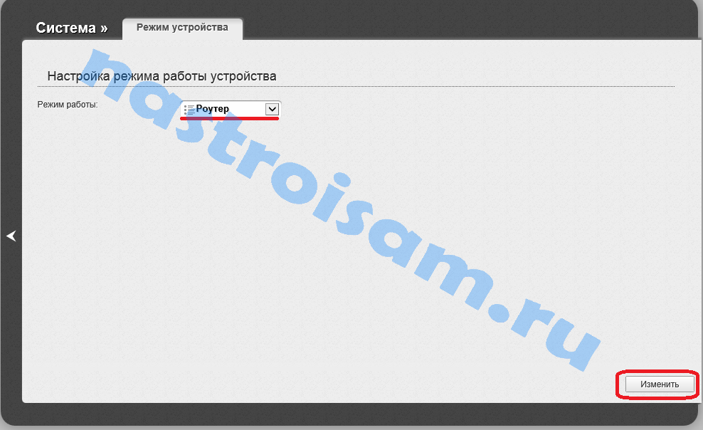 В списке «Режим работы» выбираем значение «Роутер». Нажимаем кнопку «Изменить».