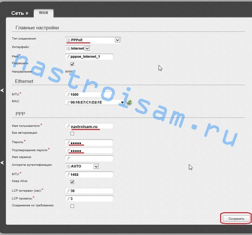 Настройка PPPoE для Ростелеком, Дом.ру, ТТК.