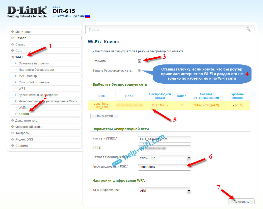 Настройка режима «Клиент» на D-LINK. Беспроводной мост (WDS)
