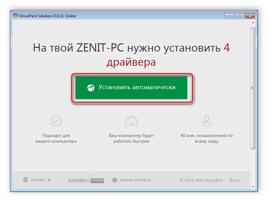 В случае, когда вы не хотите тратить время на поиск нужного драйвера для вашего ПК, к вашим услугам представлен автоматический установщик, который самостоятельно подберет нужные и самые актуальные драйвера для всех устройств вашей системы. Скачать Outbyte Drivers Installer вы можете перейдя по этой ссылке Установить драйвера автоматически