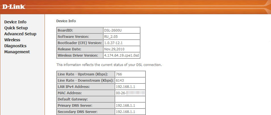 Настройка ADSL модема D-Link DSL-2600 U/BRU/C: