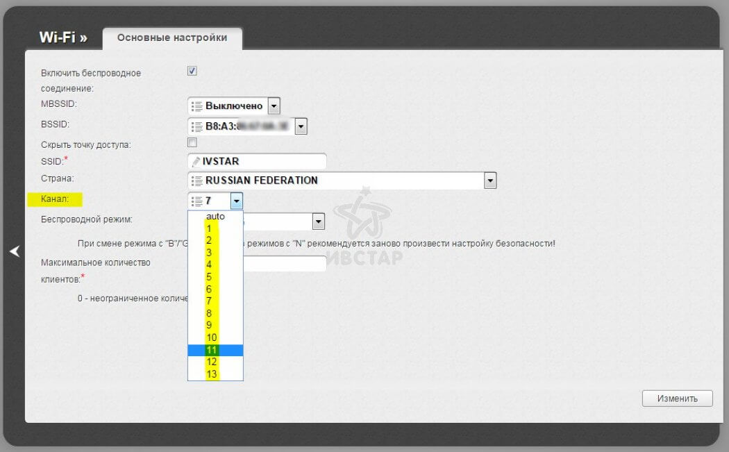 Установите на смартфон приложение Wi-Fi Analyzer (есть для Android). Эта программа наглядно покажет вам сколько беспроводных сетей работает на том же канале, что и ваш роутер, а значит вы сможете прикинуть какой номер канала вам выбрать без гаданий. Помните, что помехи от вайфай распространяются не только на том канале на котором работает ваша сеть, но и на соседних! Нажмите кнопку Сохранить, если что-то поменяли на странице.