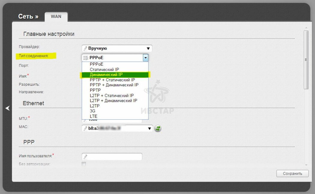 Сейчас провайдерами в основном используется либо Динамический IPv4 (ТТК Урал, частично Билайн, частично Ростелеком), либо PPPoE — Дом.ру, МТС, несколько филиалов ТТК и большинство филиалов Ростелеком. В первом случае ничего дополнительно указывать не надо.