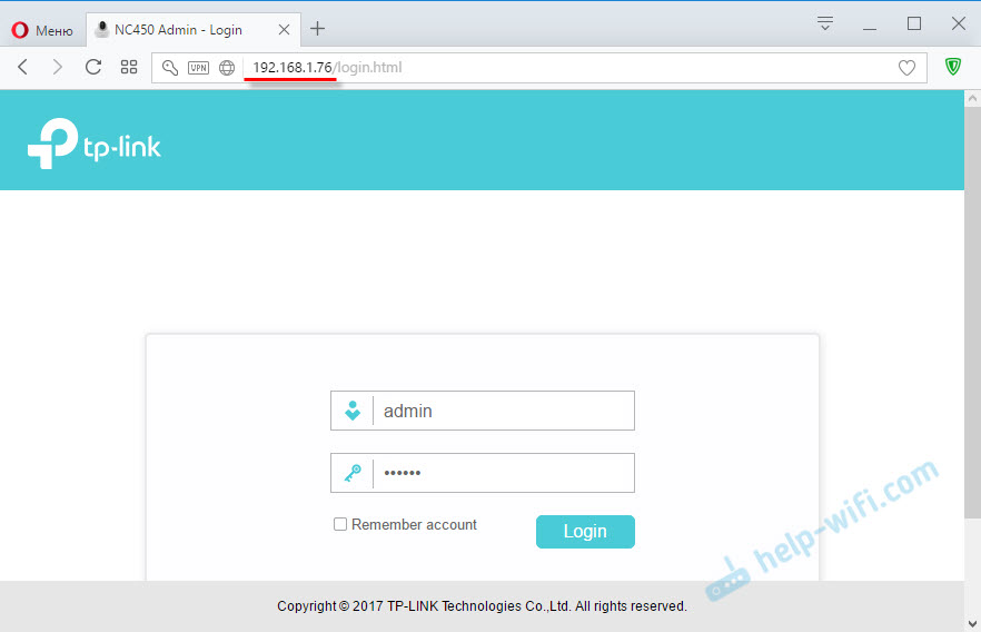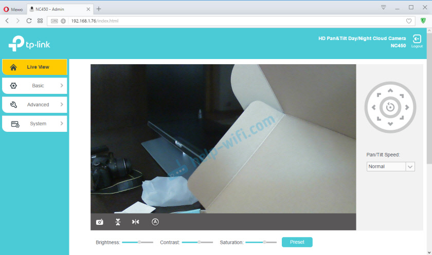 web-интерфейс камеры TP-Link NC450 (заходим в настройки)