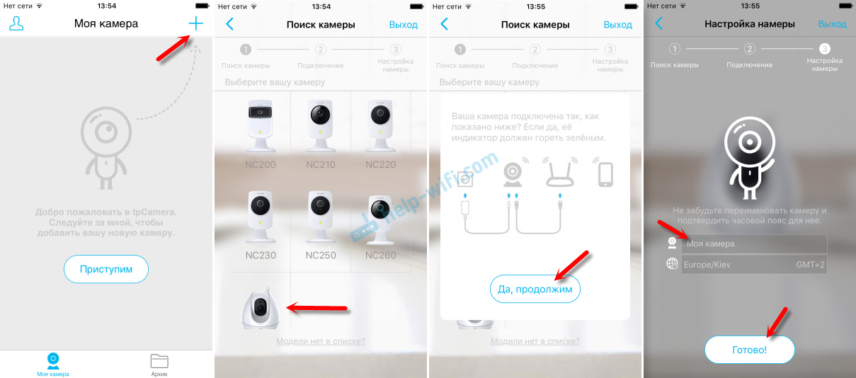 Выберите TP-Link NC200 из набора предлагаемых камер