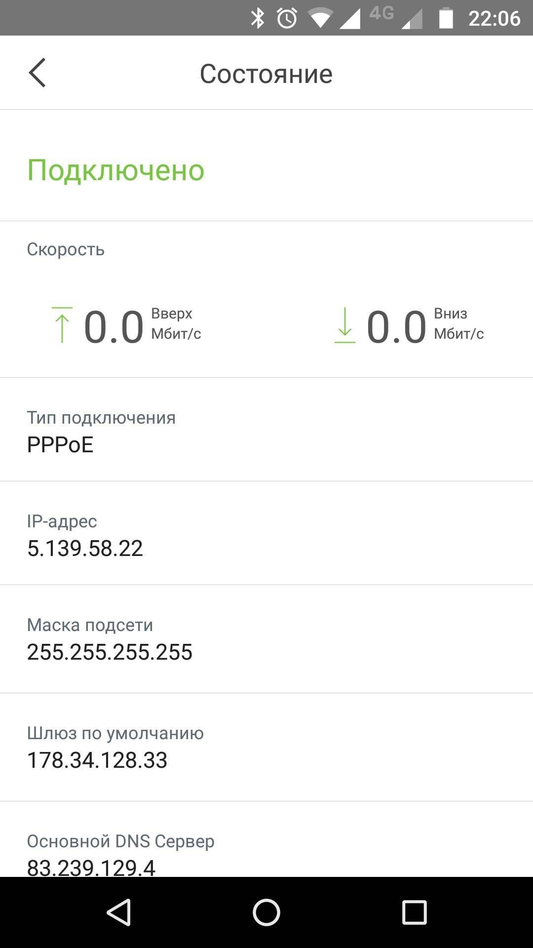 Нажав на любой элемент, можно увидеть текущее состояние и настройки. Так, при нажатии на иконку глобуса открывается экран состояния сети интернет.