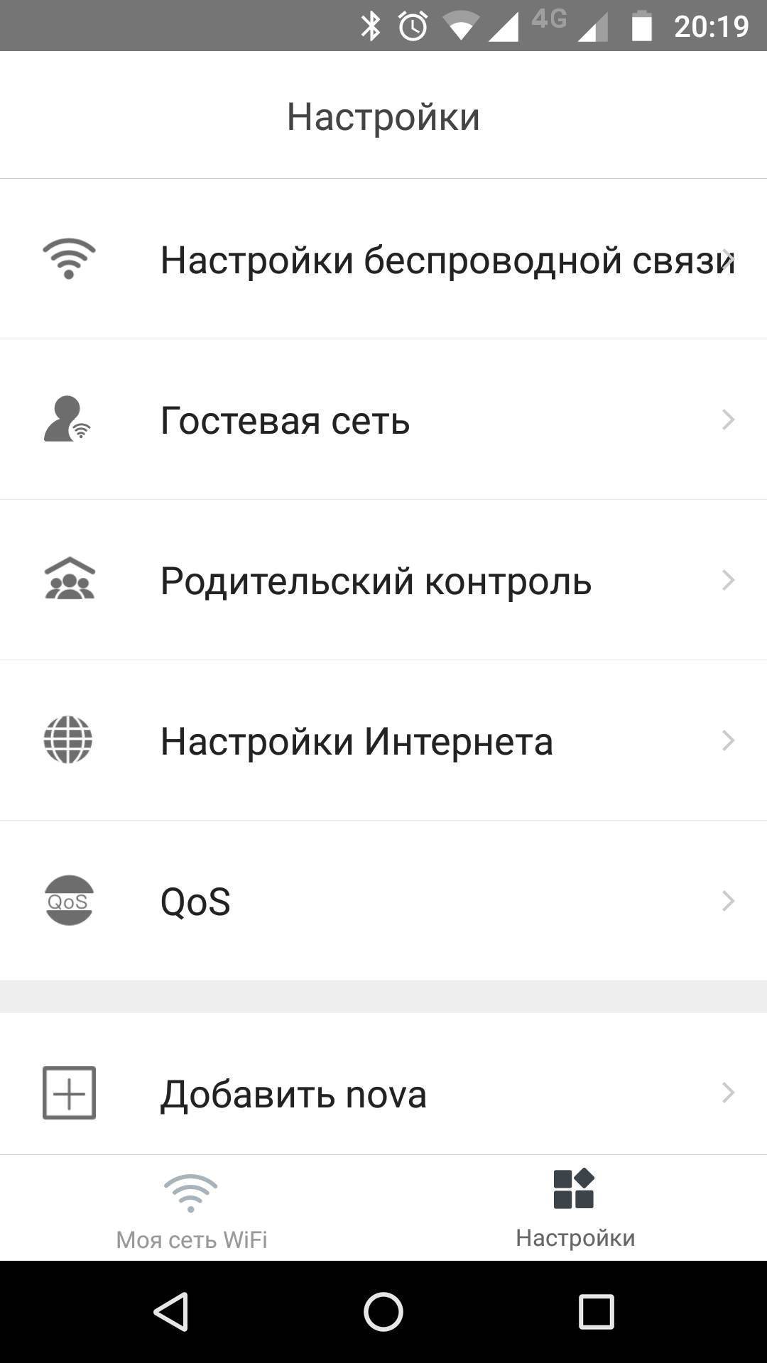 Нажав кнопку «Настройки», можно перейти к изменению настроек роутера. Их не так много, всё сделано в простом и понятном виде. В настройках можно создать гостевую сеть, установить периоды доступа клиентов к сети интернет (“Родительский контроль”), а также включить приоритизацию трафика(QOS) или быстрый роуминг.
