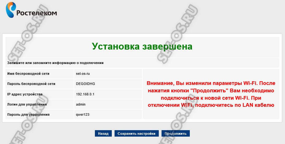 На завершающем шаге просто ещё раз сверяем данные по таблице. Нажимаем на «Продолжить», чтобы устройство сохранило настройки.