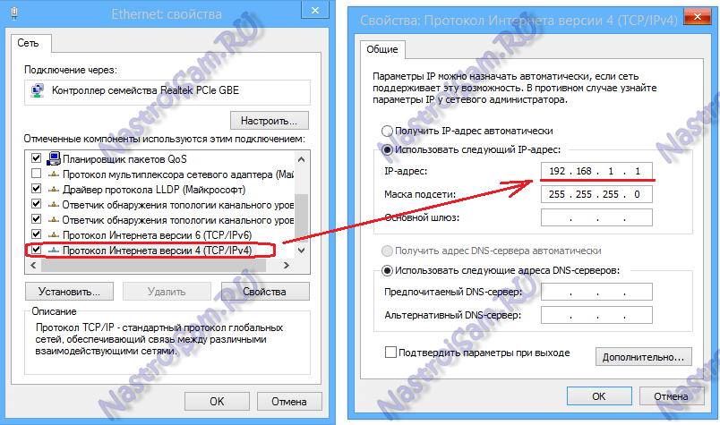 4. На сетевой плате Вашего компьютера пропишите IP-адрес 192.168.1.1 и маску 255.255.255.0.