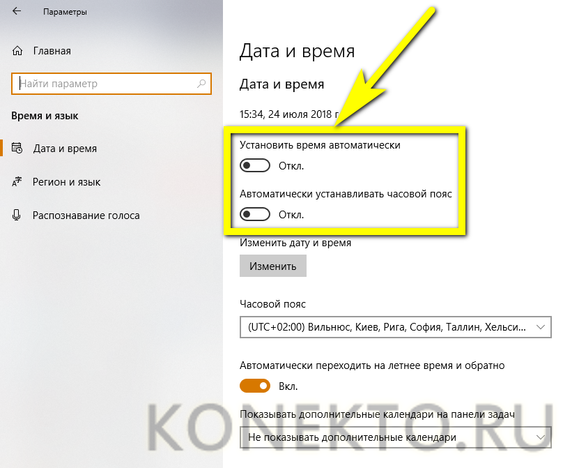 Браузер не сможет сверить актуальность сертификата, если на компьютере установлено неправильное время. Поэтому необходимо вручную изменить настройки даты. Можно узнать точное время с помощью часов или другого устройства, но лучше сразу активировать автоматическую сверку времени с интернетом, чтобы обеспечить максимальную точность и больше не сталкиваться с этой проблемой: