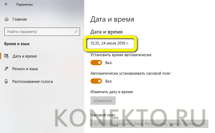 Открываем параметры даты и времени