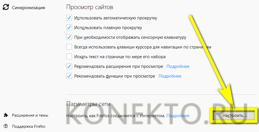 Mozilla Firefox, в отличие от Google Chrome, имеет собственные настройки прокси-сервера. С одной стороны, это крайне удобно; с другой — неправильно введённые данные могут стать причиной появления ошибки «Ваше соединение не защищено». Чтобы исправить проблему, понадобится: