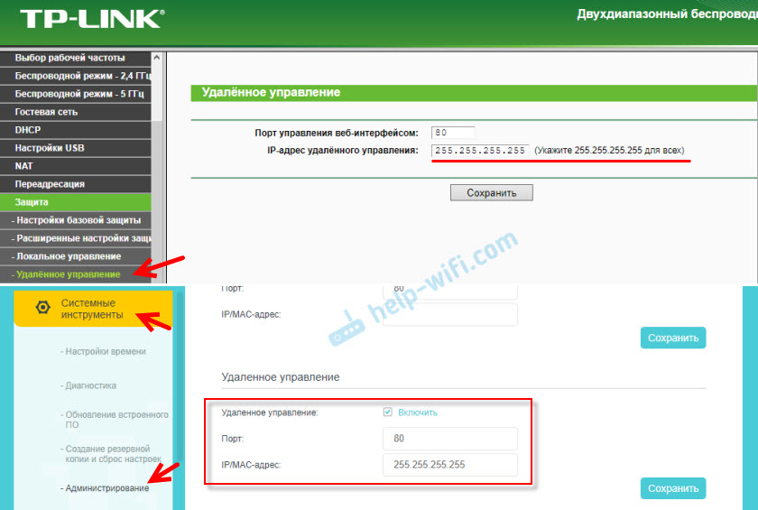 Но перед этим нужно в настройках маршрутизатора открыть удаленный доступ для всех IP-адресов.