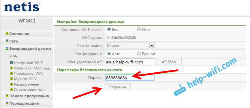 Важный момент: в режиме клиента роутер Netis не транслирует Wi-Fi сеть, что очень хорошо. Если вам нужен интернет по кабелю и по Wi-Fi, тогда настраивайте его в режиме повторителя (ссылка на инструкцию есть выше).
