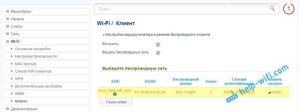 Более подробную инструкцию по настройке режима клиента на устройствах D-Link смотрите здесь: https://help-wifi.com/sovety-po-nastrojke/nastrojka-dvux-routerov-v-odnoj-seti-soedinyaem-dva-routera-po-wi-fi-i-po-kabelyu/. Смотрите после заголовка «Подключение роутера D-Link к другому роутеру по Wi-Fi (режим клиента)». Там все подробно расписано. Возможно, позже подготовлю отдельную инструкцию.