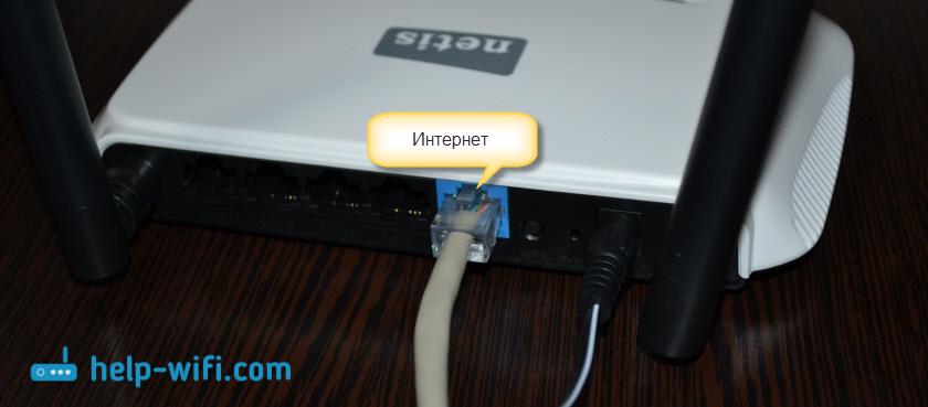 Прежде чем перейти к настройке Netis, нужно сначала его подключить. К роутеру подключить питание. В WAN порт (синий) нужно подключить кабель от модема Eltex.