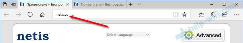 После того как вы подключились к аппарату – нужно открыть любой доступный браузер и зайти по адресу: 192.168.1.1 или netis.cc. Только проверьте, что данный адрес стоит в адресной строке, а не поисковой.
