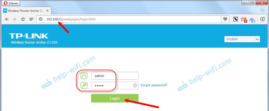 Значит к роутеру мы подключились. Теперь открываем любой браузер, и переходим в нем по адресу http://tplinkwifi.net, или 192.168.0.1. Должно появится окно с запросом имени пользователя и пароля. По умолчанию, это admin и admin. Указываем их и попадаем в панель управления. Если не получается открыть настройки, то смотрите эту статью с возможными решениями.
