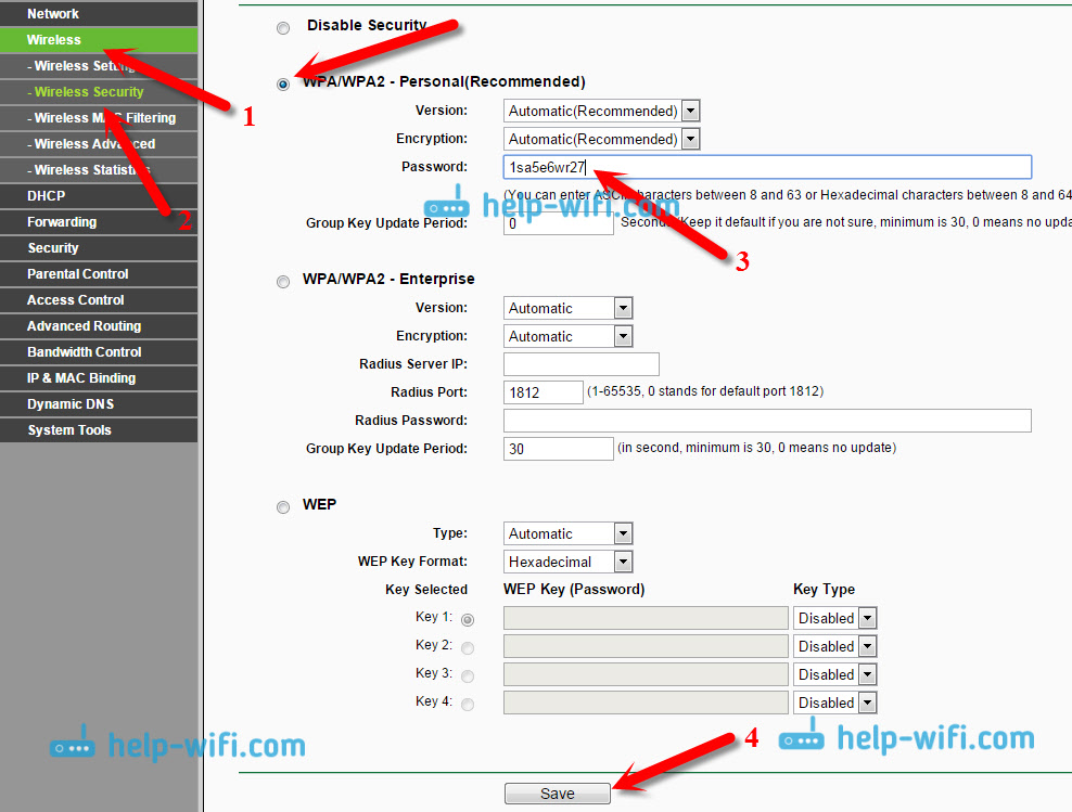 Если вы просто хотели поменять пароль на Tp-Link, то делаем все точно так же, только удаляем старый пароль, задаем новый и сохраняем настройки. После перезагрузки нужно подключится к вашей сети, указав новый пароль, который мы только что установили.