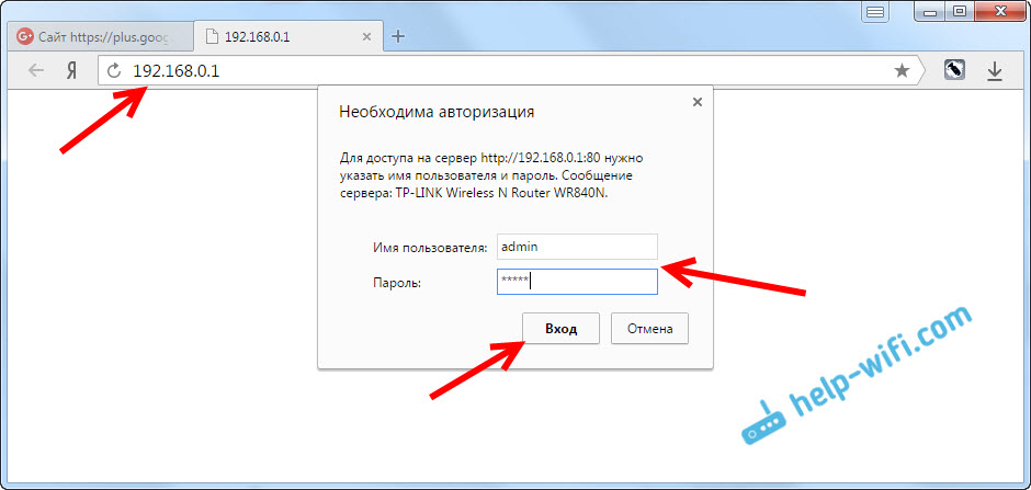 - Во втором случае нужно открыть любой браузер, вписать в адресную строку tplinkwifi.net или 192.168.0.1, и заполнить строки логина и пароля словом «admin».
