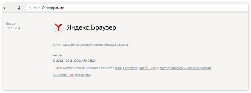 Если версия актуальна, на вышеуказанной странице будет написано «Вы пользуетесь актуальной версией Яндекс.Браузера».