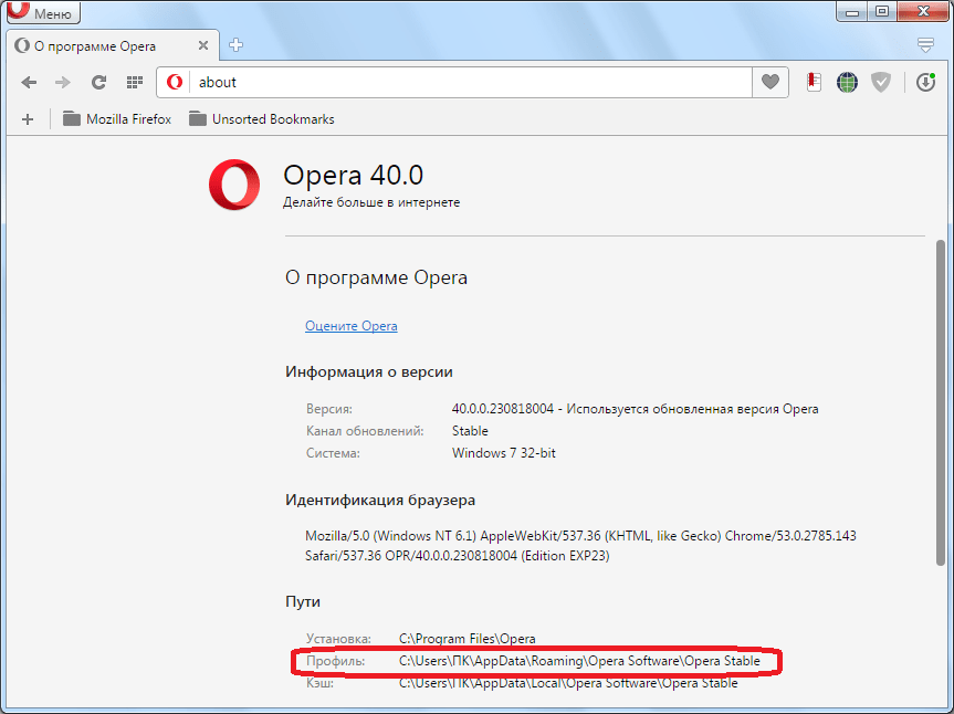 На открывшейся странице можно найти полный путь к профилю Оперы.