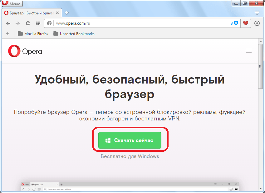 Для того чтобы скачать Opera для Windows, переходим на страницу загрузки официального сайта — http://www.opera.com/ru/computer/windows