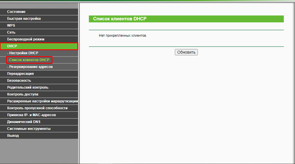 IP- и MAC-адреса уже подключённых устройств можно посмотреть в таблице раздела DHCP — Список клиентов DHCP (DHCP Client List)