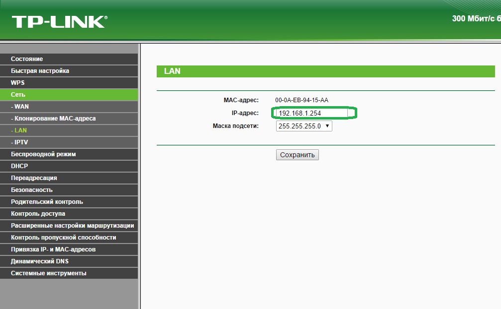 Затем если у роутеров одинаковый IP-адрес в локальной сети, то необходимо его изменить на втором роутере. Для этого заходим в «Сеть – LAN»