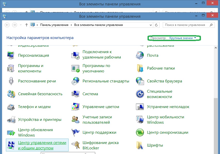 В открывшемся окне по умолчанию обычно выбран просмотр по категориям, нам нужно переключиться на «Мелкие значки»