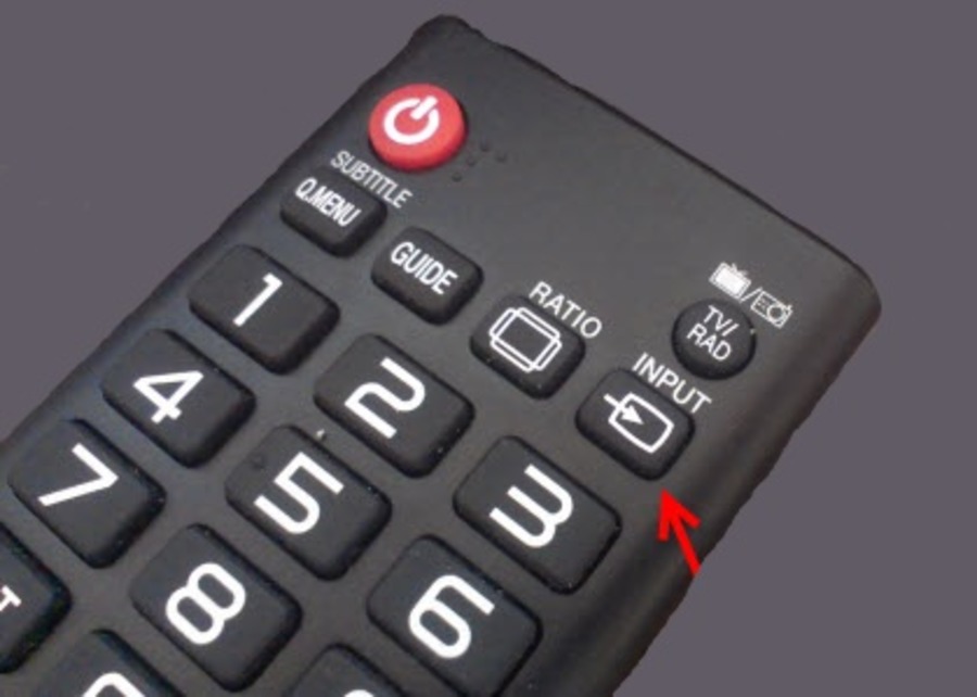 На пульте к телевизору нужно нажать Input (может быть Source в зависимости от модели), чтобы указать нужный источник сигнала.