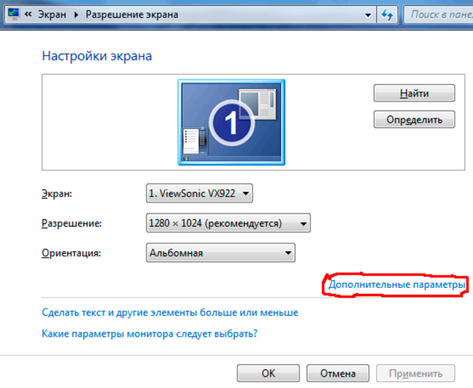 Закончив с разрешением — перейдите в меню дополнительных параметров на вкладке «Монитор».