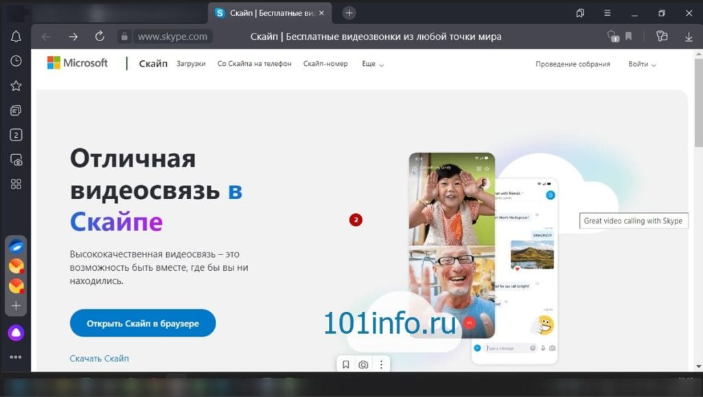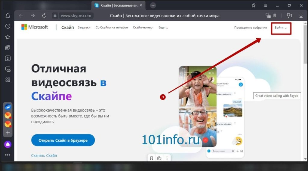 Из контекстного меню выбрать строку «Использовать Скайп через браузер».