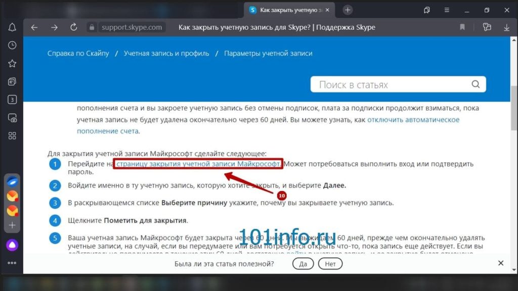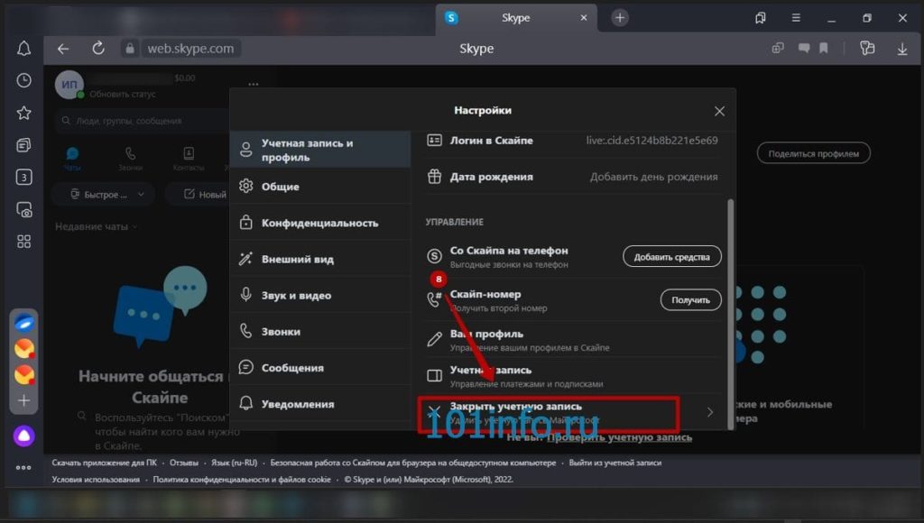 Удаление учетной записи Skype в браузере включает следующие шаги: